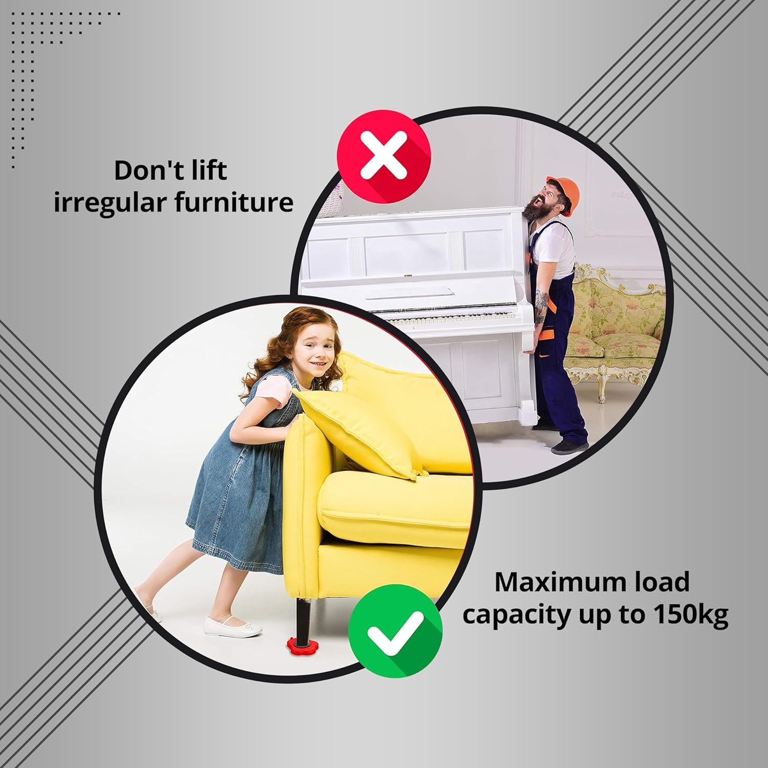 Load Capacity: The Furniture Lifter and Mover is capable of handling weights up to 150 KG / 330 pounds, making it effortless to move furniture and heavy objects with ease.